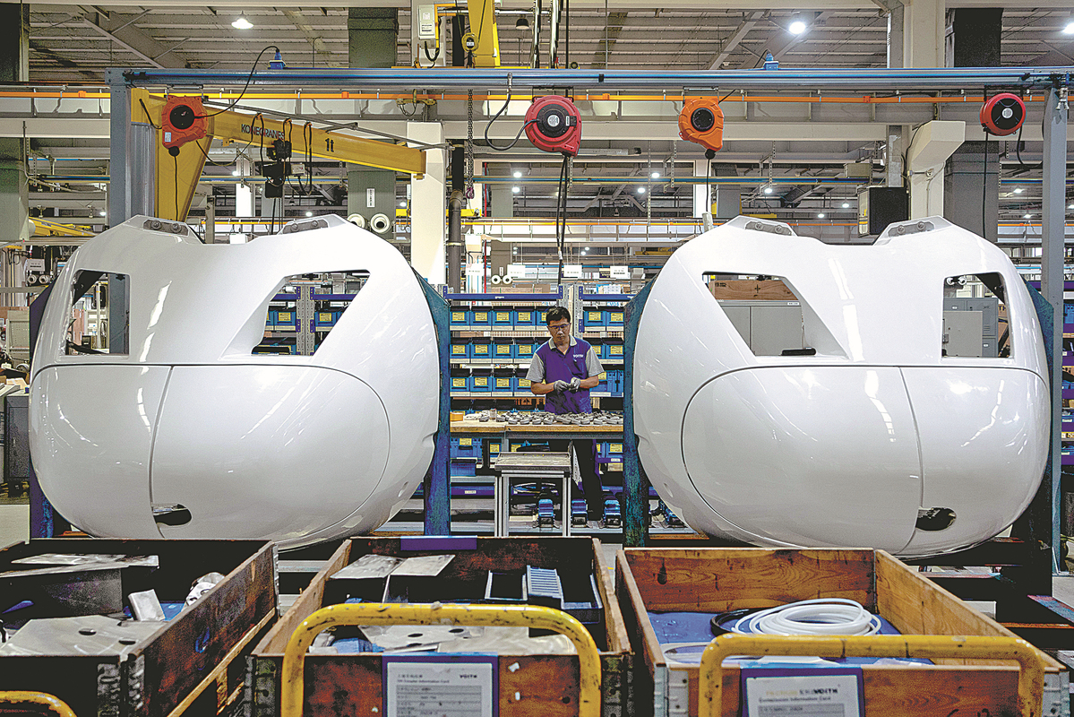 A Voith Turbo employee works on the Shanghai assembly line on Thursday. GAO ERQIANG/CHINA DAILY