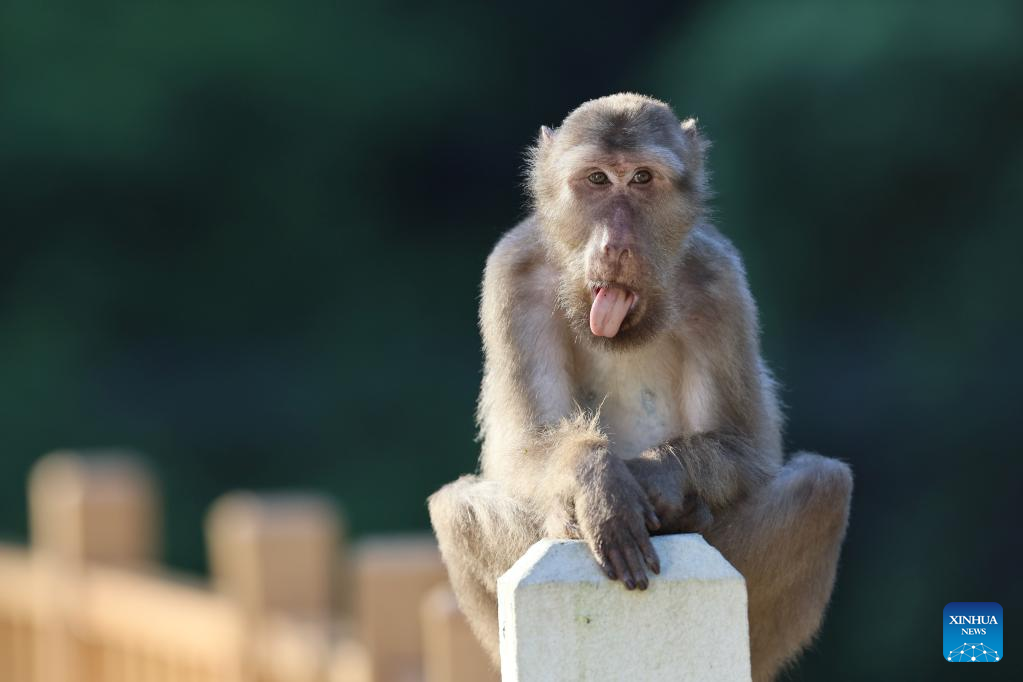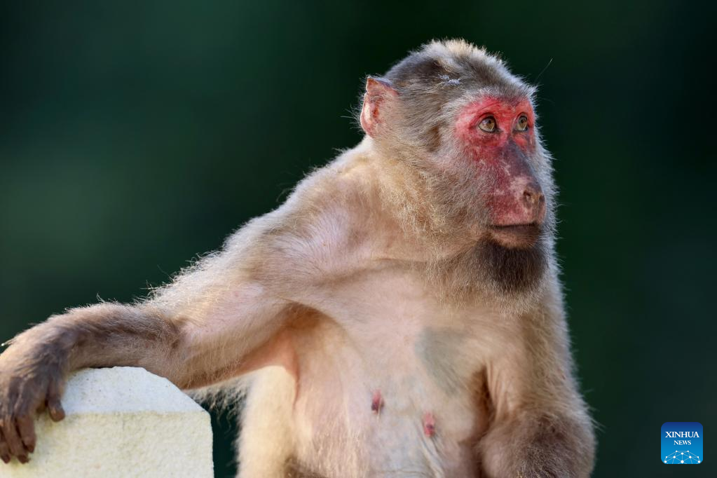 A Tibetan macaque is pictured in the Wuyishan National Park, southeast China's Fujian Province, July 23, 2022.