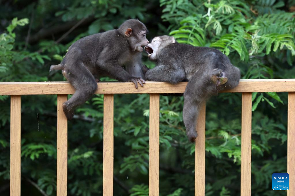 Tibetan macaques are pictured in the Wuyishan National Park, southeast China's Fujian Province, July 23, 2022.