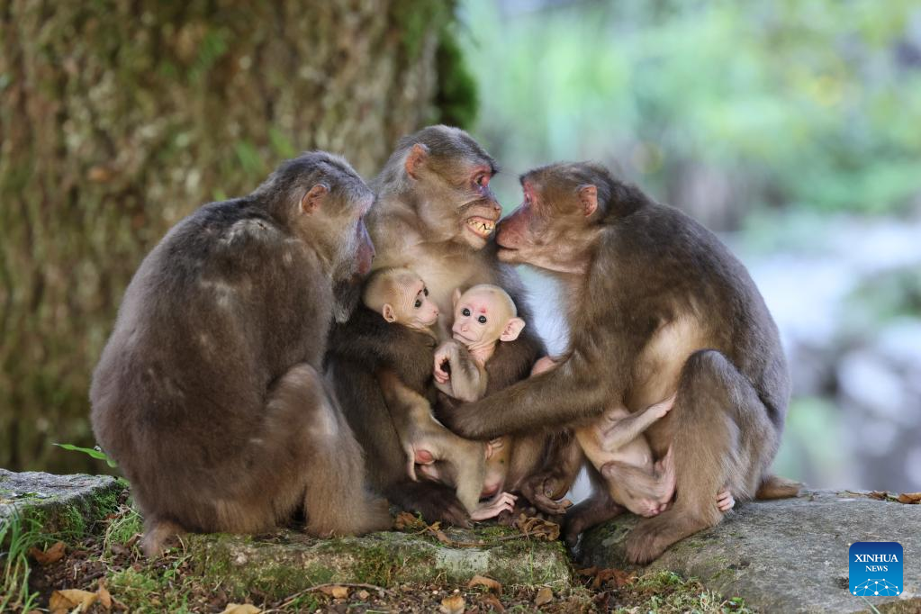 The number of wild Tibetan macaques has been on the rise in the park, thanks to stronger ecological protection and rising environment protection awareness. (Xinhua/Jiang Kehong)