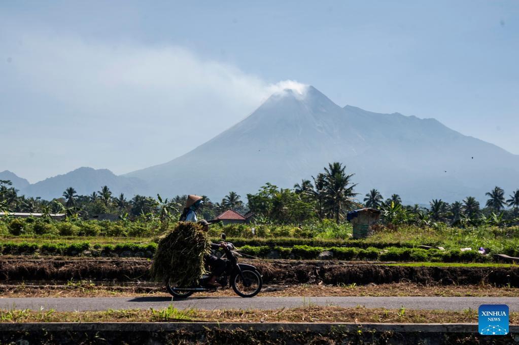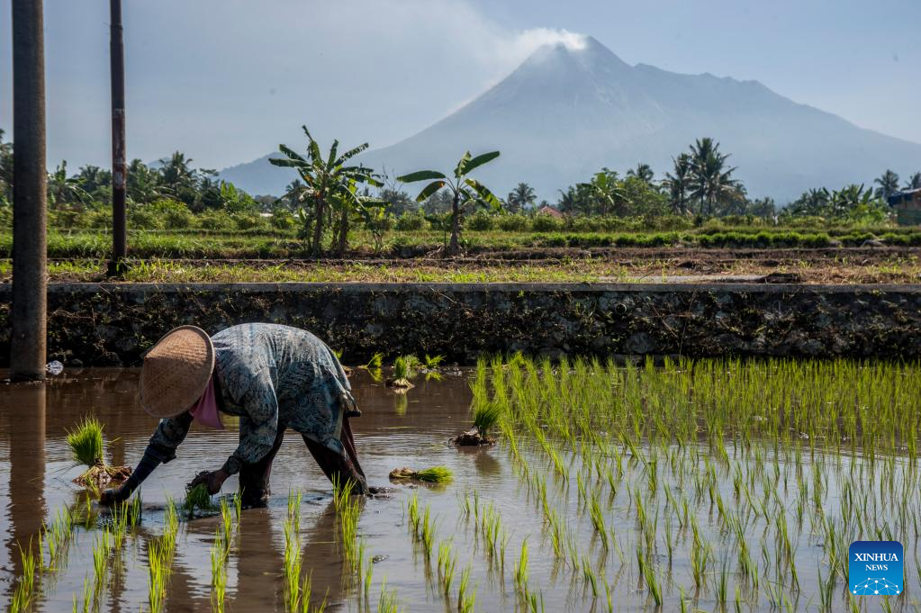 A farmer works in a paddy field near Mount Merapi at Cangkringan Village in Sleman district, Yogyakarta, Indonesia, July 26, 2022. (Photo by Agung Supriyanto/Xinhua)