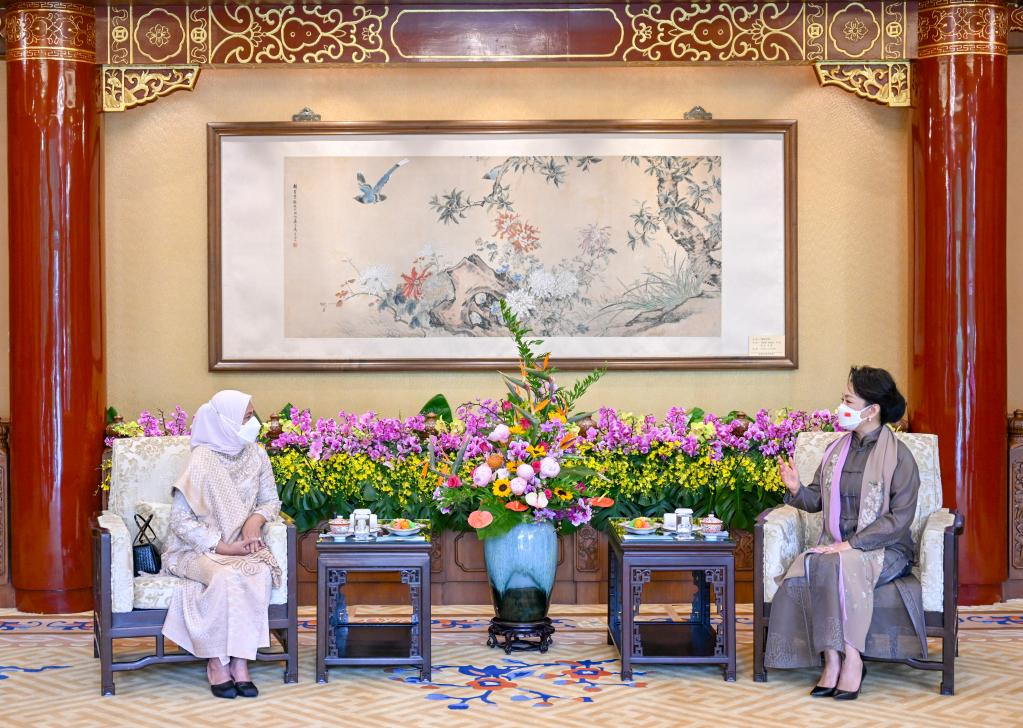 Peng Liyuan, wife of Chinese President Xi Jinping, meets with Indonesian First Lady Iriana Joko Widodo in Beijing, capital of China, July 26, 2022. (Xinhua/Xie Huanchi)