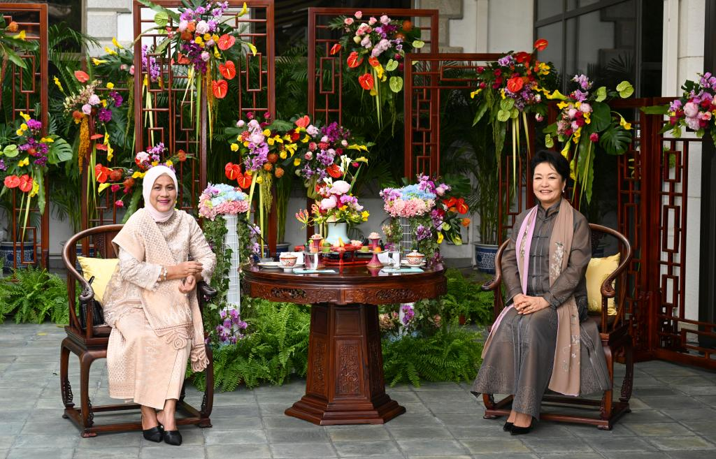 Iriana said she was delighted to see old friends in Beijing, and thanked President Xi and Peng for their hospitality. She welcomed more Chinese tourists to visit Indonesia and said she hopes for a lasting friendship between Indonesia and China.