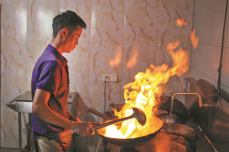 Luosang Yisi, 21, runs a restaurant in his hometown in Maizhokunggar county, Lhasa, Tibet autonomous region. [JIANG FAN/XINHUA]