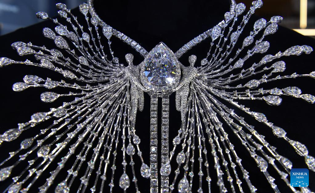 Photo taken on July 27, 2022 shows a piece of jewelry work named "Before Time" at the second China International Consumer Products Expo (CICPE) in Haikou, south China's Hainan Province. The expo showcases over 2,800 brands from home and abroad. (Xinhua/Yang Guanyu)
