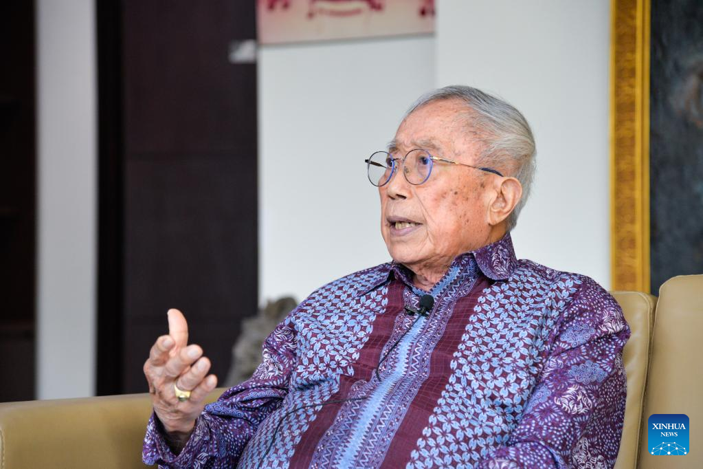 Jusuf Wanandi, senior fellow and co-founder of Indonesia's leading think tank, the Centre for Strategic and International Studies, speaks during an interview with Xinhua in Jakarta, Indonesia, July 18, 2022. (Xinhua/Xu Qin)