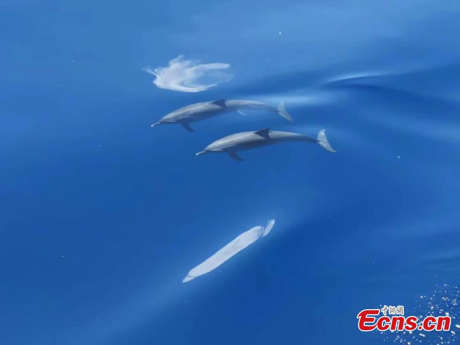 A group of dolphins are spotted frolicking in waters of the Xisha Islands, the South China Sea, July 29, 2022. (Photo provided to China News Service)