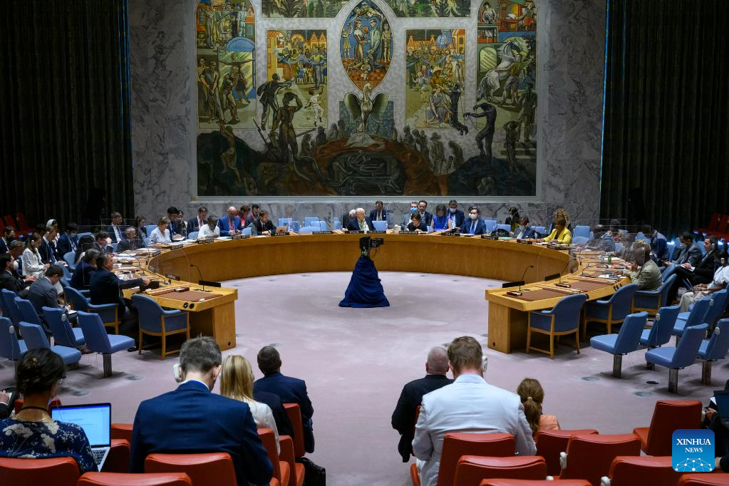 Photo taken on July 29, 2022 shows the UN Security Council briefing on Ukraine at the UN headquarters in New York. Rosemary DiCarlo, UN under-secretary-general for political and peacebuilding affairs, said on Friday that the Russia-Ukraine conflict shows no signs of ending, despite an "encouraging" grain deal. (Loey Felipe/UN Photo/Handout via Xinhua)