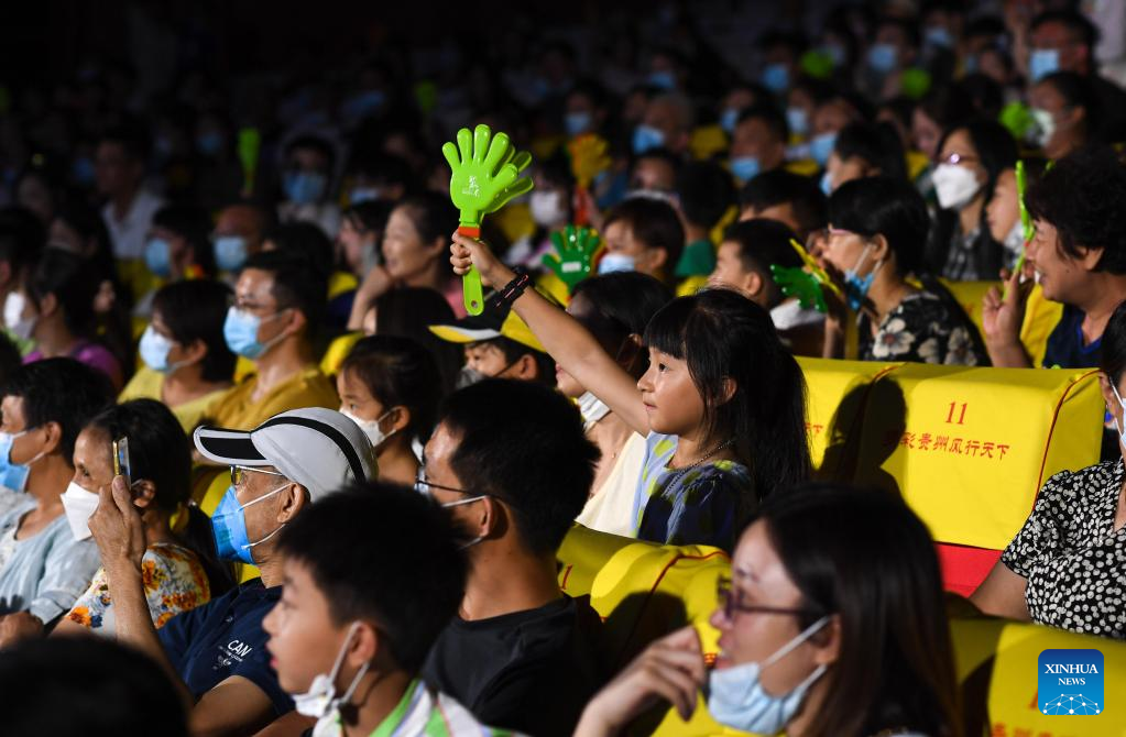 The audience enjoy the show "Colorful Guizhou Style" at Guiyang Grand Theatre in Guiyang, southwest China's Guizhou Province, July 30, 2022. Performance of the song and dance show "Colorful Guizhou Style" has recently resumed at Guiyang Grand Theatre.