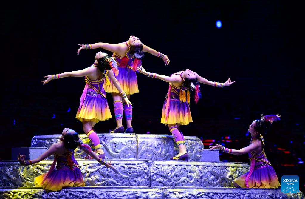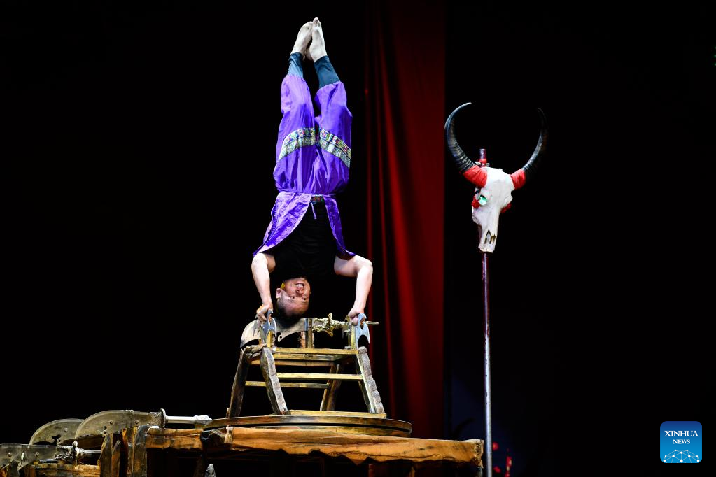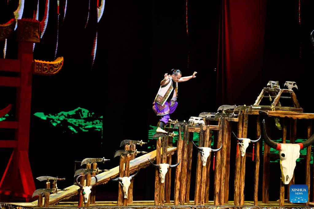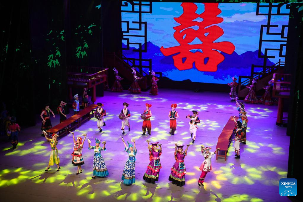 Actors perform in the show "Colorful Guizhou Style" at Guiyang Grand Theatre in Guiyang, southwest China's Guizhou Province, July 30, 2022.