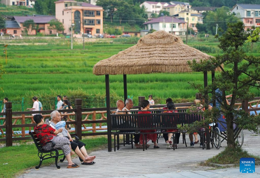 Tourists rest in Sanping Village of Zhongyuan Town in Jing'an County, east China's Jiangxi Province, July 27, 2022.