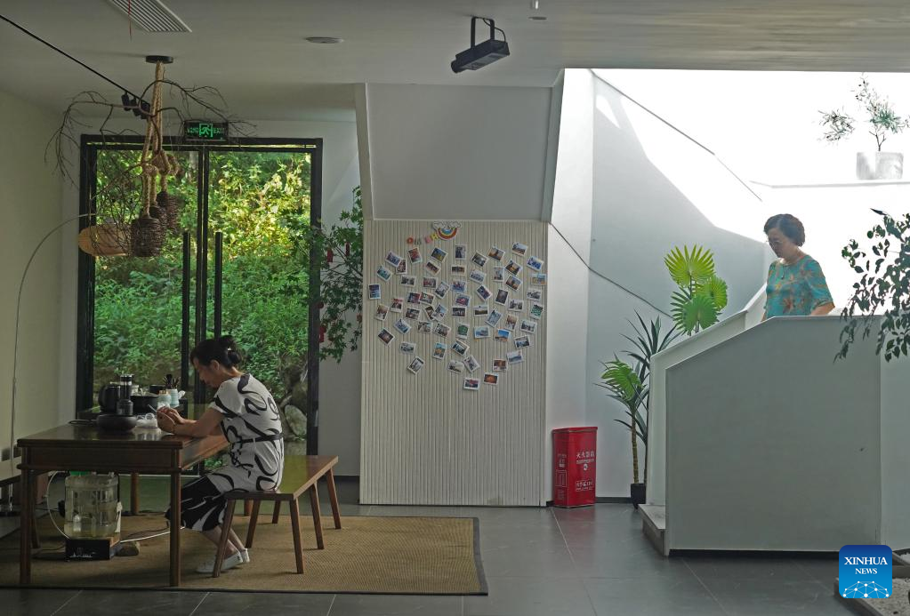 Tourists are seen in a guest house in Hegang Village of Zhongyuan Town in Jing'an County, east China's Jiangxi Province, July 28, 2022.