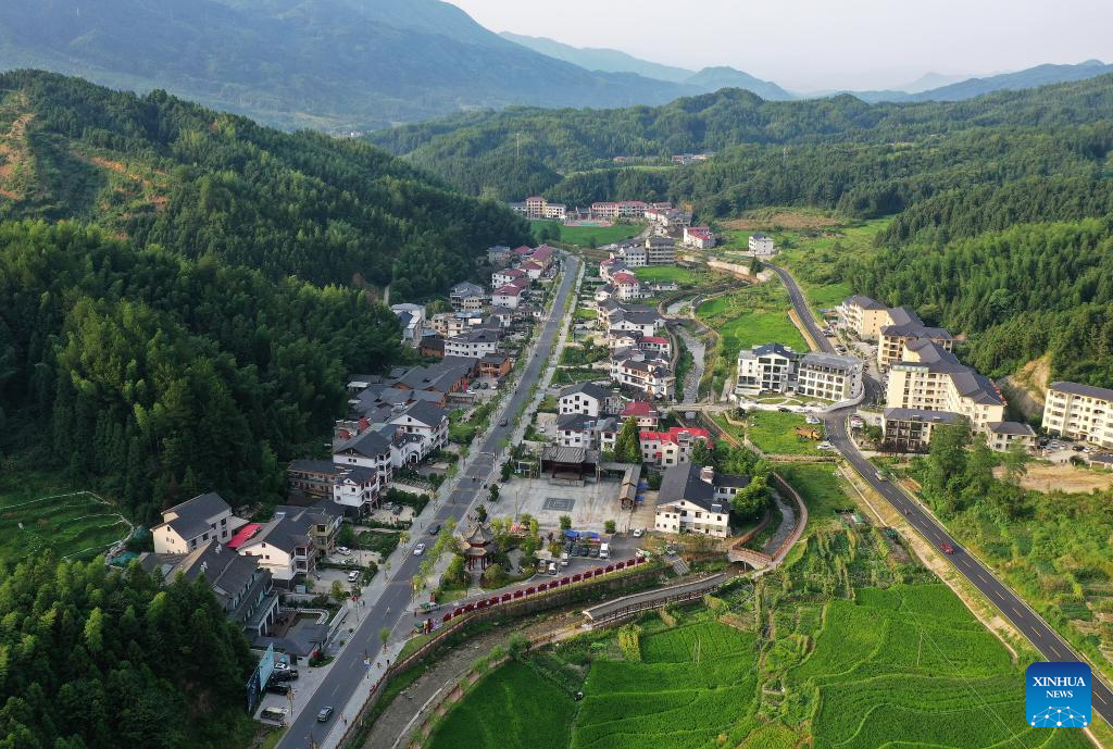 Aerial photo taken on July 27, 2022 shows a view of Sanping Village of Zhongyuan Town in Jing'an County, east China's Jiangxi Province.