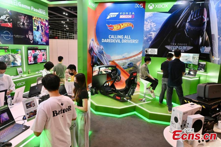 Photo shows an exhibition area at the 23rd Animation-Comic-Game Hong Kong, the Hong Kong Special Administrative Region, July 28, 2022. (Photo: China News Service/Li Zhihua)