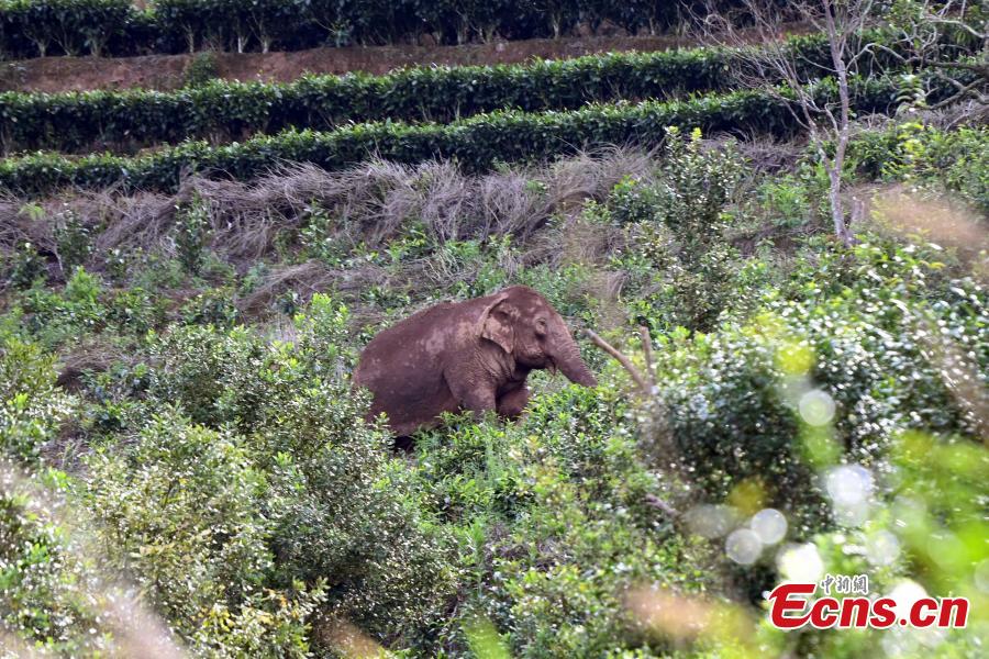 A herd of wild Asian elephants and a calf wander in the village of Mankelao, Puer, southwest China's Yunnan Province, July 31, 2022. Monitors have closely managed to follow the wild Asian elephants in Yunnan. (Photo: China News Service/Li Jiaxian)
