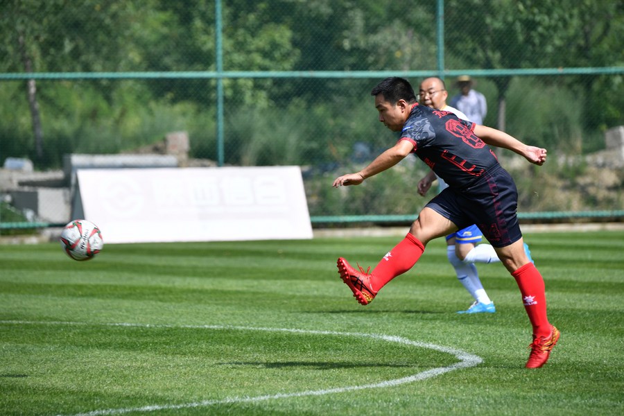 Tourists play football at a football training base in Liuba County of northwest China's Shaanxi Province, July 30, 2022. (Xinhua/Shao Rui)