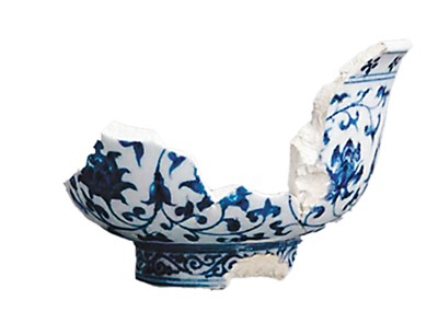 A researcher displays a specimen of ceramics from the Chenghua period (1465-1487) of the Ming Dynasty (1368-1644). (Photo/Wang Kaifeng)