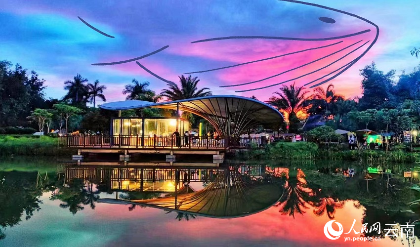 Photo shows clouds in the sky during a sunset at Dianchi Lake in Haiyan village, Kunming, southwest China’s Yunnan Province. (Photo taken by Liu Yi of People’s Daily Online; image in the same photo drawn by Li Xiaoran)