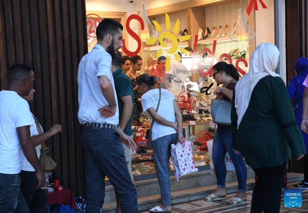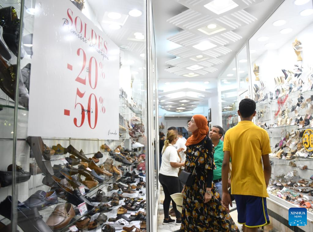 People visit a store as the summer discount season starts in Tunis, Tunisia, on Aug. 4, 2022. (Photo by Adel Ezzine/Xinhua)