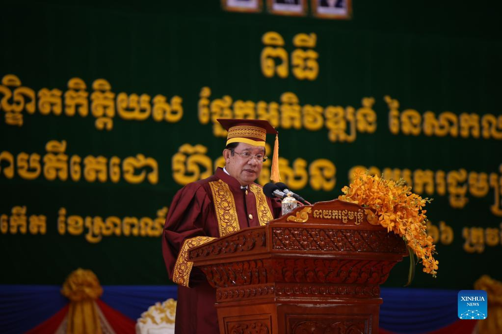 PHNOM PENH, Aug. 5 (Xinhua) -- Cambodian Prime Minister Samdech Techo Hun Sen on Friday was bestowed with an honorary doctorate of development from the state-run Royal University of Phnom Penh (RUPP).