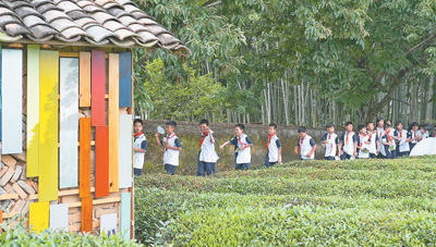 Children visit an open-air art exhibition named "Art at Fuliang" in Shiziyuan, an unincorporated village administered by Hanxi village of Zangwan township, Fuliang county, Jingdezhen city, in east China's Jiangxi Province.