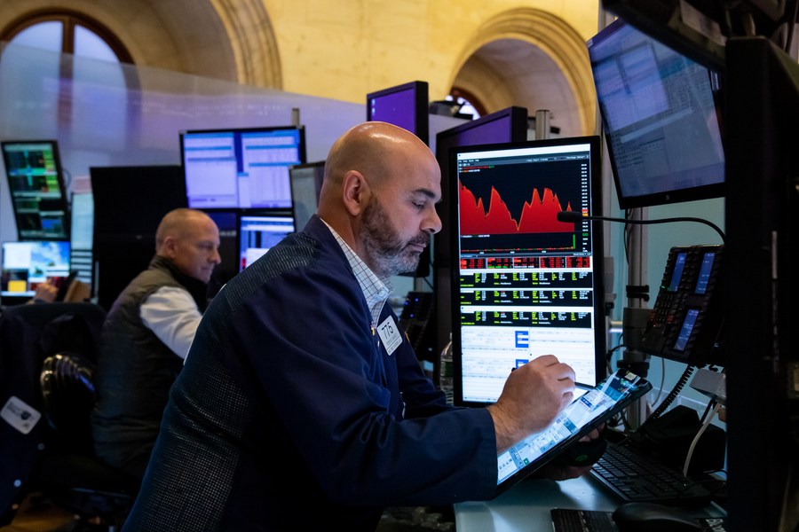 Traders work on the floor of the New York Stock Exchange (NYSE) in New York, the United States, June 16, 2022. (Photo by Michael Nagle/Xinhua)