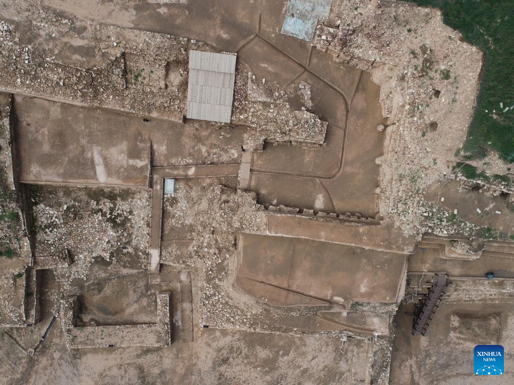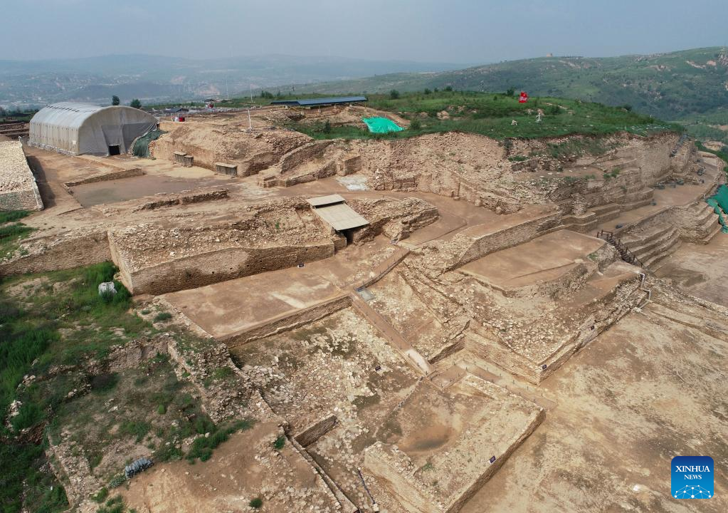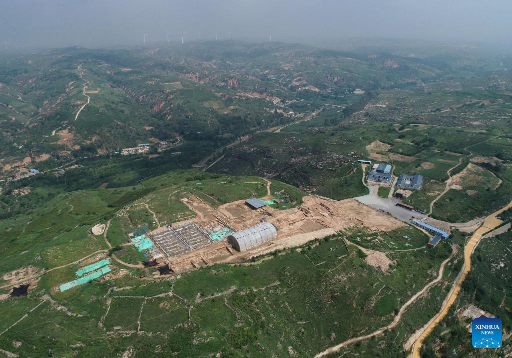 Aerial photo taken on Aug. 6, 2022 shows a view of the Shimao ruins, an important prehistoric site in Shenmu City, northwest China's Shaanxi Province.
