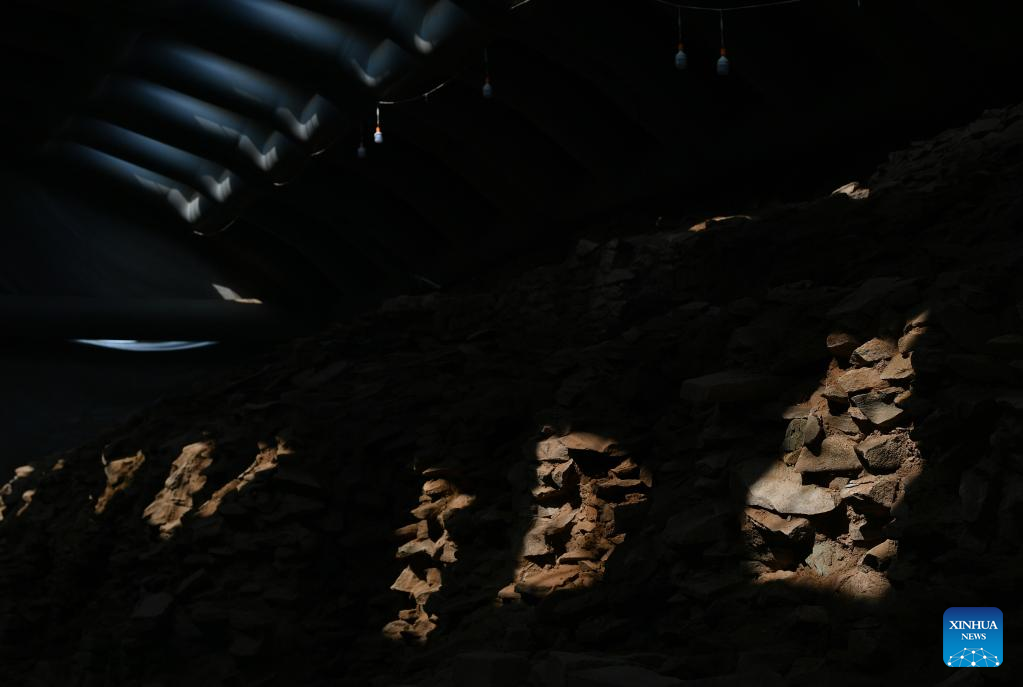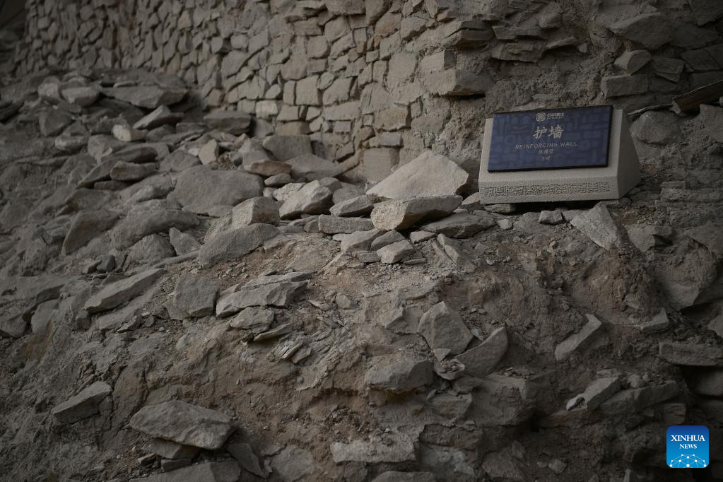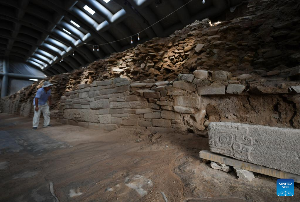 Photo taken on Aug. 6, 2022 shows the reinforcing wall at the Shimao ruins, an important prehistoric site in Shenmu City, northwest China's Shaanxi Province.