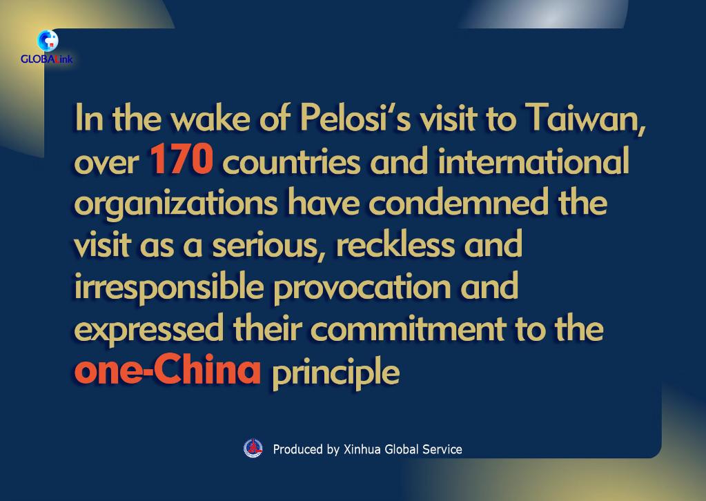 In the wake of Pelosi's visit to Taiwan, over 170 countries and international organizations have condemned the visit as a serious, reckless and irresponsible provocation and expressed their commitment to the one-China principle