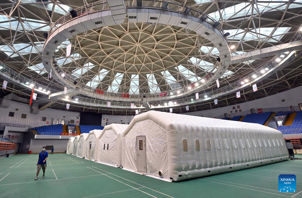 Photo taken on Aug. 7, 2022 shows inflatable COVID-19 testing labs in Sanya, south China's Hainan Province, Aug. 7, 2022. Prevention and control measures have been taken in Sanya to fight against the new resurgence of COVID-19 in the city. (Xinhua/Guo Cheng)
