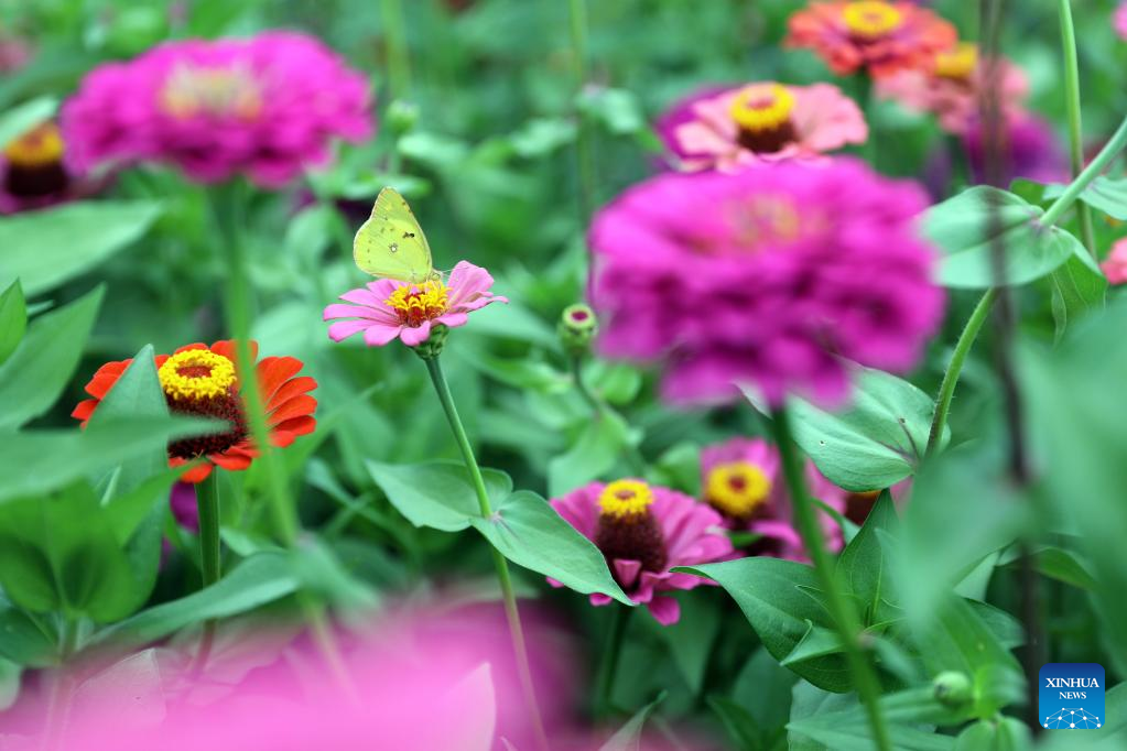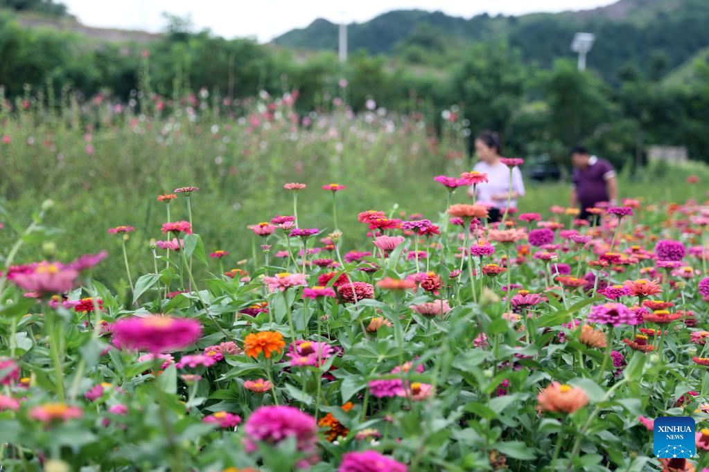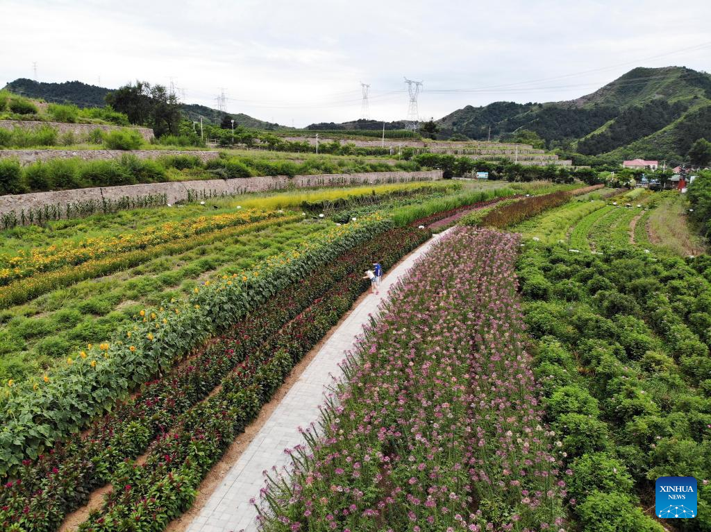 Photo taken on Aug. 8, 2022 shows a scenic area themed Chinese medicine and flowers planting in Luanping County of Chengde, north China's Hebei Province. In recent years, local authorities of Luanping have striven to upgrade its construction of tourism infrastructure in innovative ways, thus powering its tourism development. (Xinhua/Luo Xuefeng)