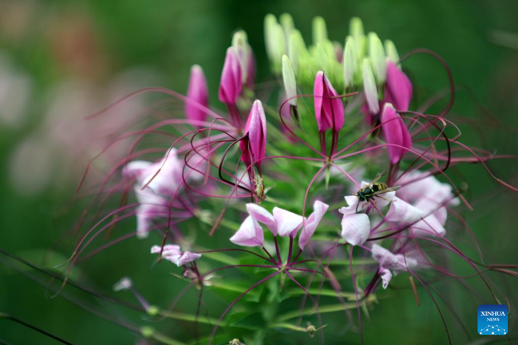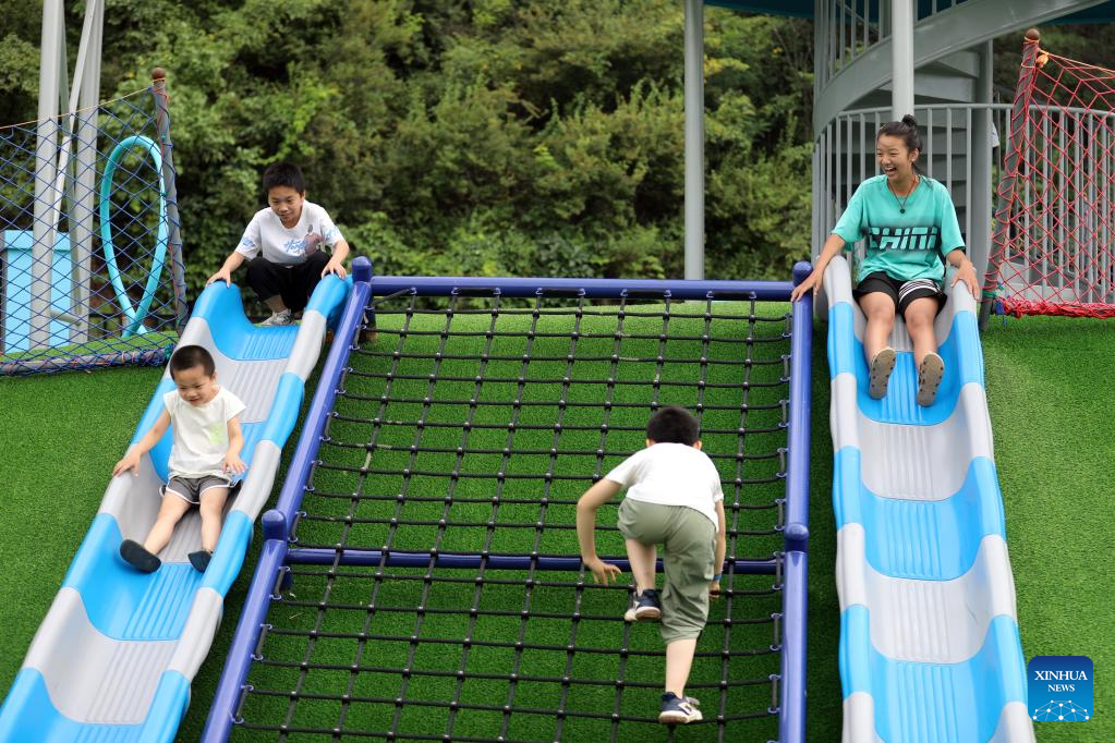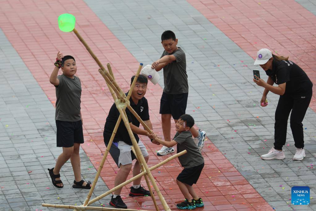 People have fun during a summer camp event held at a scenic area themed Chinese medicine and flowers planting in Luanping County of Chengde, north China's Hebei Province, Aug. 8, 2022. In recent years, local authorities of Luanping have striven to upgrade its construction of tourism infrastructure in innovative ways, thus powering its tourism development. (Xinhua/Luo Xuefeng)