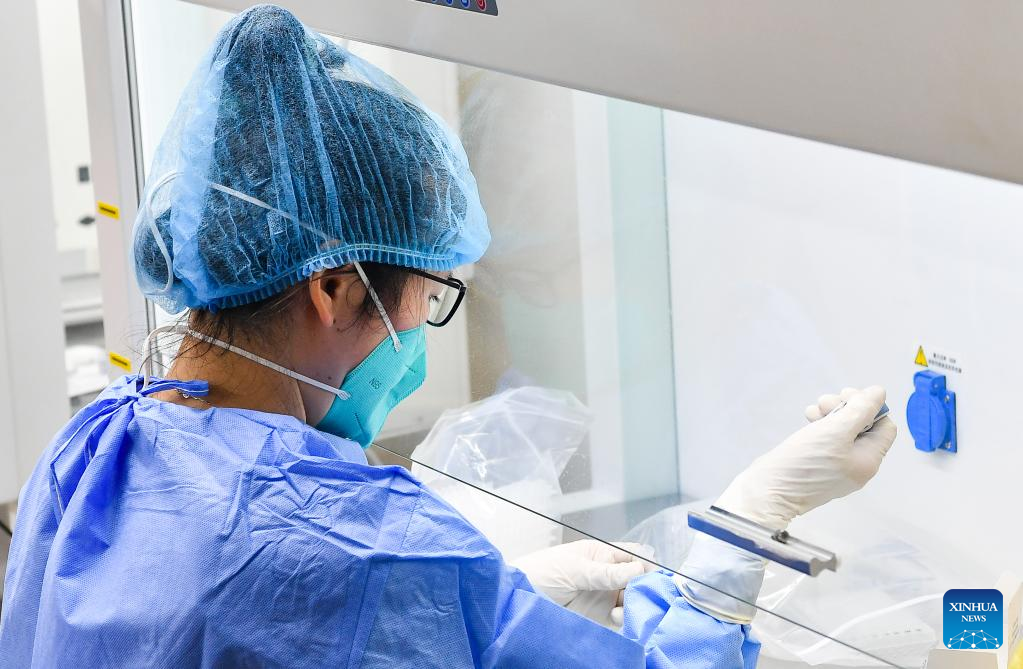 The labs, some of which built with aid from east China's Shanghai and Jiangsu Province, can test about 230,000 tubes of nucleic acid samples on a daily basis. (Xinhua/Yang Guanyu)