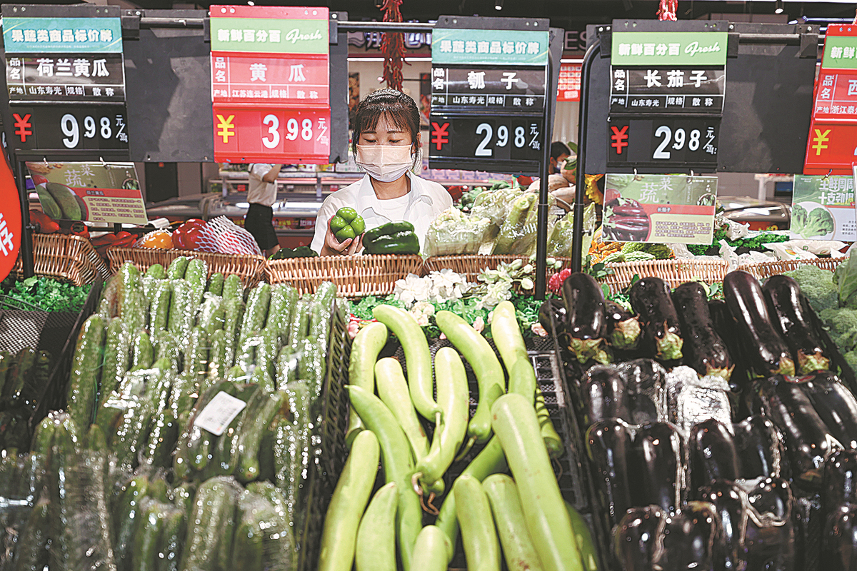 A shopper picks vegetables at a supermarket in Lianyungang, Jiangsu province. [Photo by SI WEI/FOR CHINA DAILY]