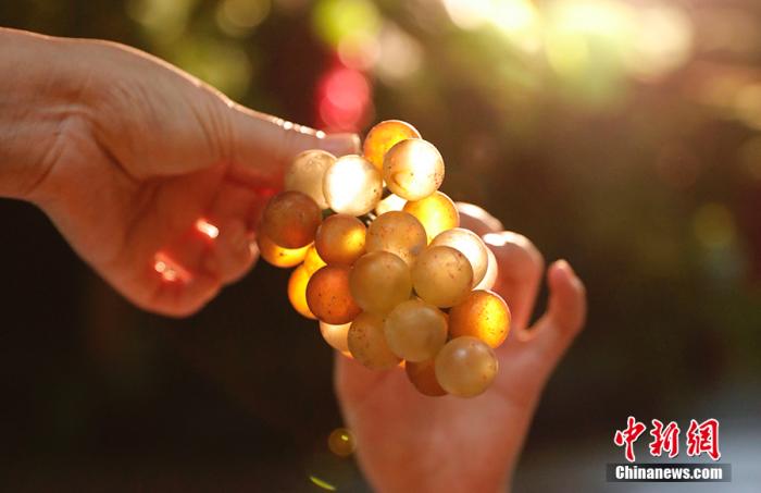 Photo shows a glass grape. (Chinanews.com/Zhai Lu)