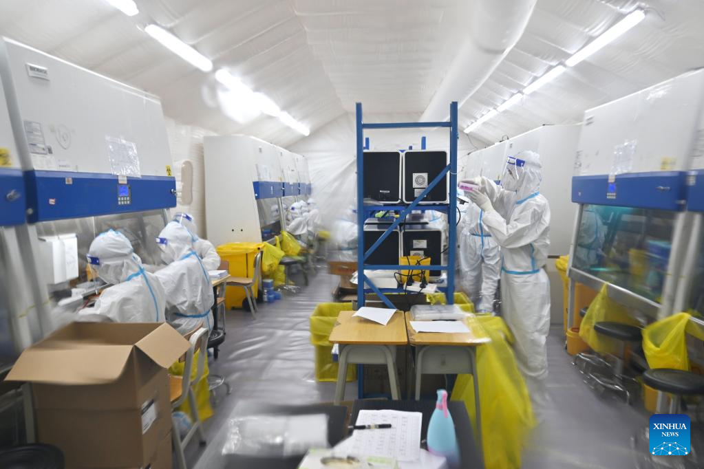 Medics from south China's Guangdong Province test nucleic acid samples in Sanya, south China's Hainan Province, Aug. 11, 2022.