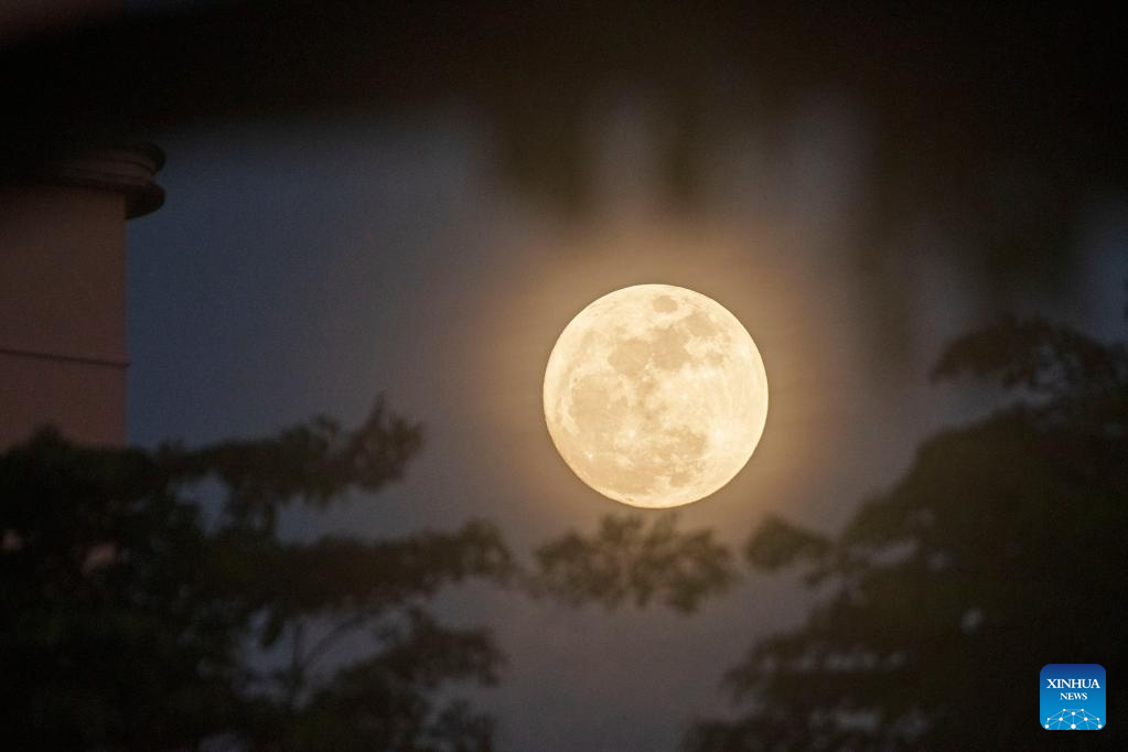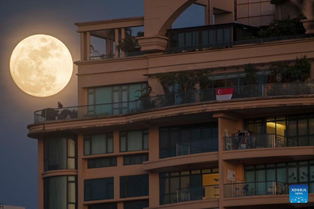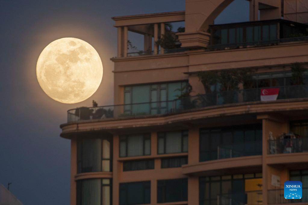 The moon rises in the sky above Singapore on Aug. 11, 2022. (Xinhua/Then Chih Wey)