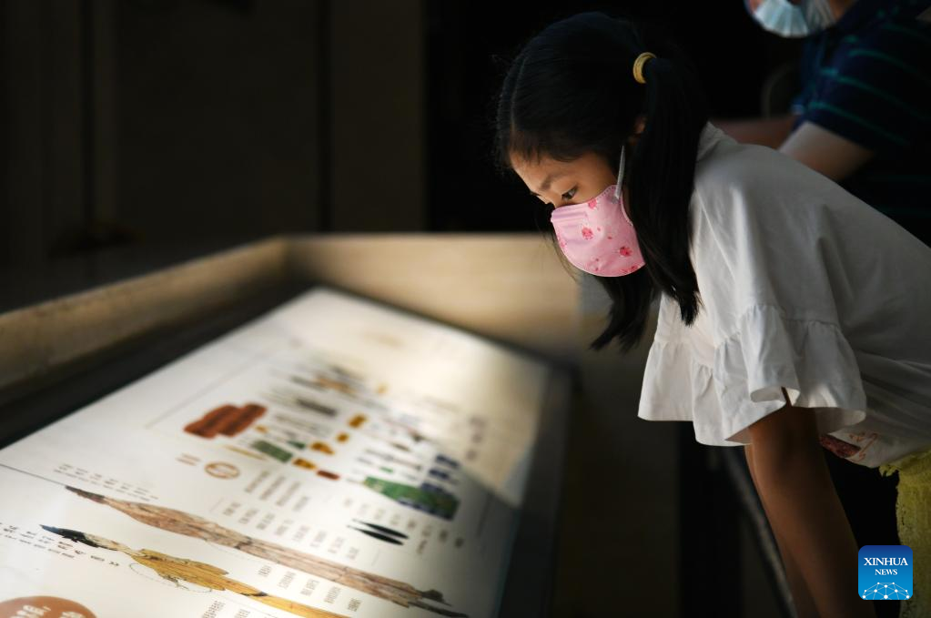 A girl visits the Shaanxi History Museum in Xi'an, northwest China's Shaanxi Province, Aug. 11, 2022.