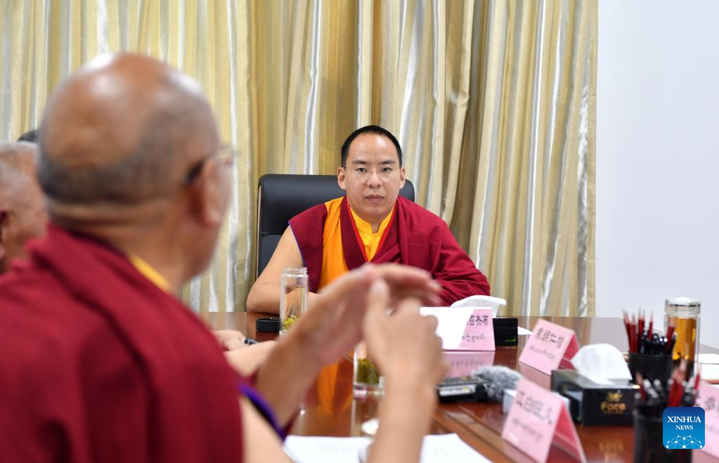 LHASA, Aug. 11 (Xinhua) -- Panchen Erdeni Chos-kyi rGyal-po had performed his daily duties as president of the Tibet branch of the Buddhist Association of China in Lhasa since mid-May.
