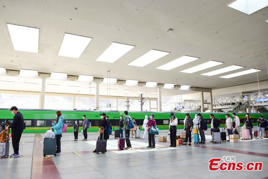 Passengers queue to get out of the Lhasa railway station in southwest China's Tibet Autonomous Region, Aug. 11, 2022. (Photo/China News Service)