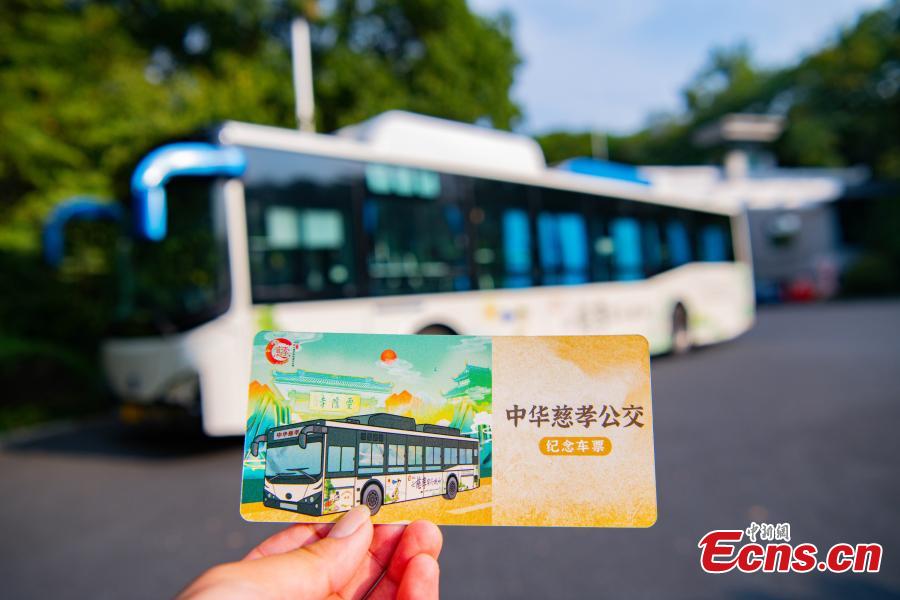 Photo shows a commemorative bus ticket of the bus featuring Chinese virtue in Hangzhou, , east China's Zhejiang Province, Aug. 10, 2022. (Photo provided to China News Service)