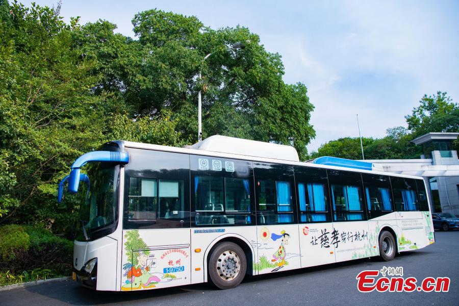 A bus featuring traditional Chinese filial piety is unveiled in Hangzhou, east China's Zhejiang Province, Aug. 10, 2022. (Photo provided to China News Service)