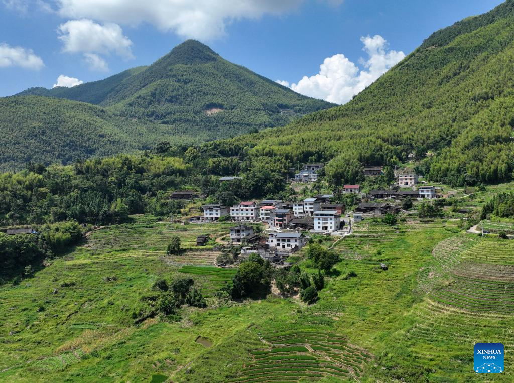 Aerial photo taken on Aug. 12, 2022 shows the terraced fields in Lianhe Township of Youxi County, southeast China's Fujian Province.