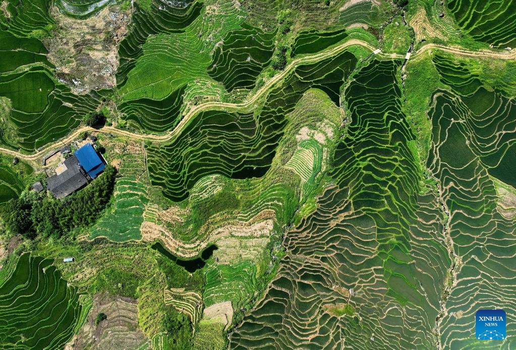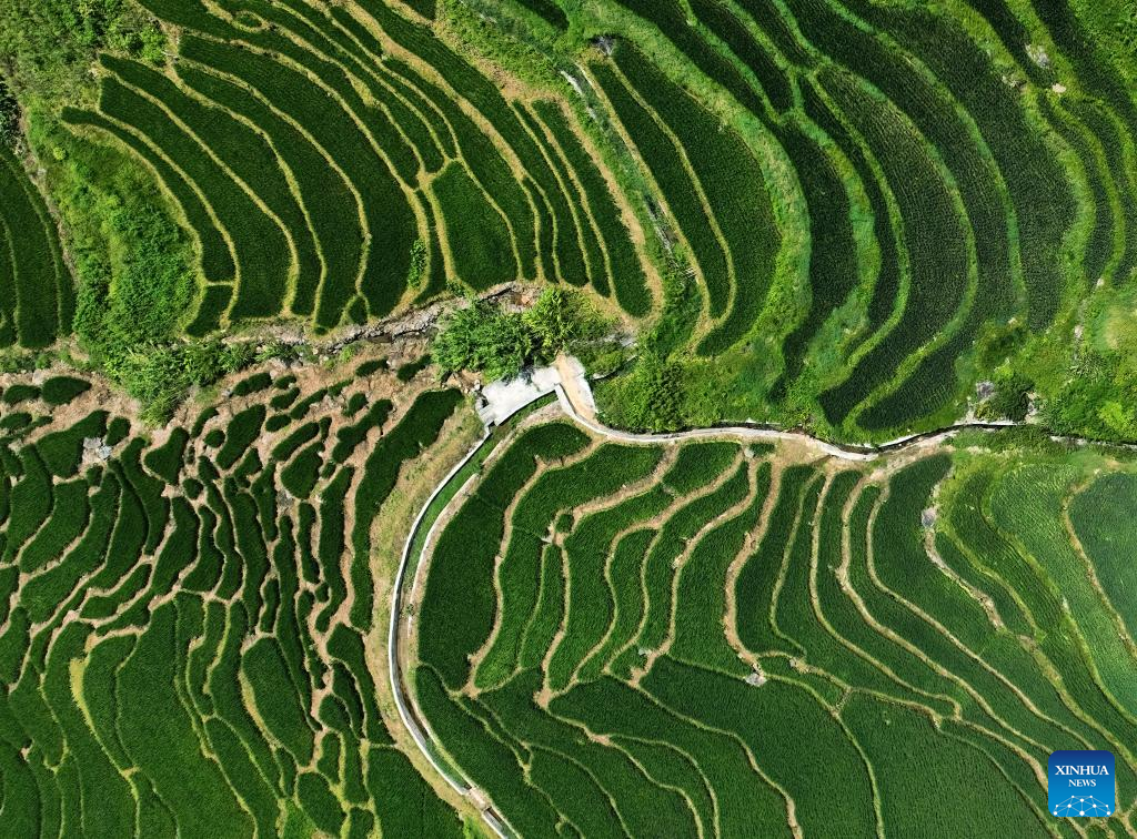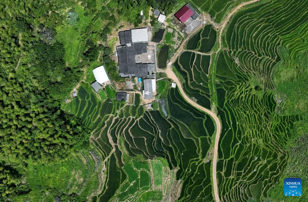The terraced field in Lianhe Township was designated by the Food and Agriculture Organization of the United Nations as one of the Globally Important Agricultural Heritage Systems (GIAHS) in 2018. (Xinhua/Wei Peiquan)