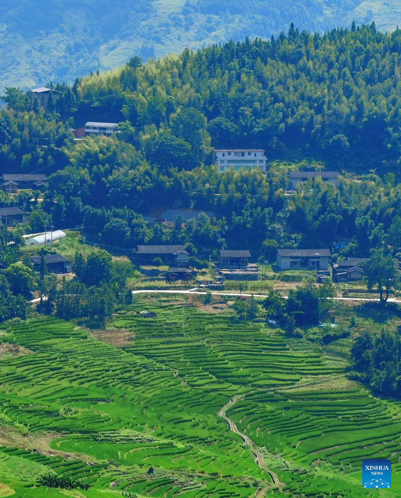 Photo taken on Aug. 12, 2022 shows the terraced fields in Lianhe Township of Youxi County, southeast China's Fujian Province.