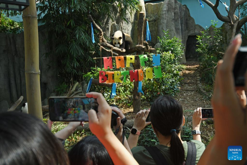 Giant panda celebrates first birthday in Singapore