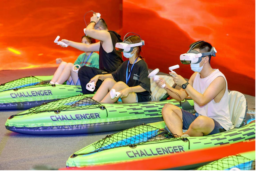Citizens experience e-sports interactive game at a theater in Fuzhou, capital of southeast China’s Fujian Province, July 18, 2022. (People’s Daily Online/Xie Guiming)