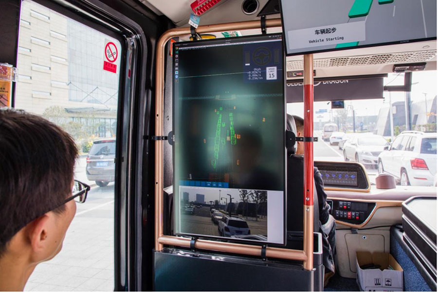 The first 5G-empowered autonomous bus in China starts regular passenger services in Suzhou HSR New Town in Suzhou, east China's Jiangsu Province, Oct. 22, 2020. (Photo by Shang Zhen/People's Daily Online)