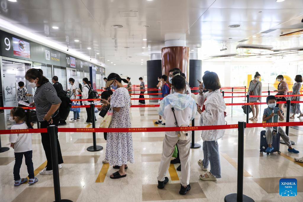 As of Saturday, Hainan Province registered 3,809 confirmed COVID-19 cases and 3,927 asymptomatic ones between Aug. 1 and 13, local authorities said at a press briefing on Sunday. Hainan has helped visitors stranded in the province return home. By 6 a.m. Sunday, 14,247 stranded visitors had left Sanya and the provincial capital Haikou in 92 flights. (Xinhua/Zhang Liyun)