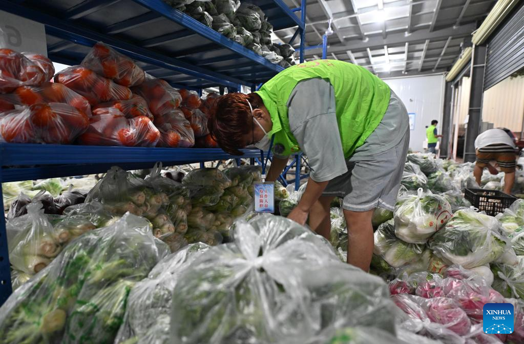 Wu Fanli (L) helps a resident arrange daily supplies in Sanya, south China's Hainan Province, Aug. 14, 2022. After the recent COVID-19 resurgence in Sanya, a coastal resort city, Zhang Haiyang, 22, a second-year graduate student, and his girlfriend Wu Fanli, 21, have joined a team of volunteers. They have driven a minivan to deliver daily supplies to local residents. Starting from 6 a.m. Zhang and Wu can deliver more than 100 orders per day. (Xinhua/Guo Cheng)